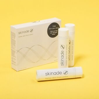 Award-winning Skinade, one of the most advanced anti-ageing skincare products available, comes in peach and mangosteen flavour in ready-to-drink 150ml bottles. Developed by leading UK scientists, it aims to boost your natural production of collagen and hyaluronic acid as a bio-available, collagen liquid supplement: improving your skin from the inside out.